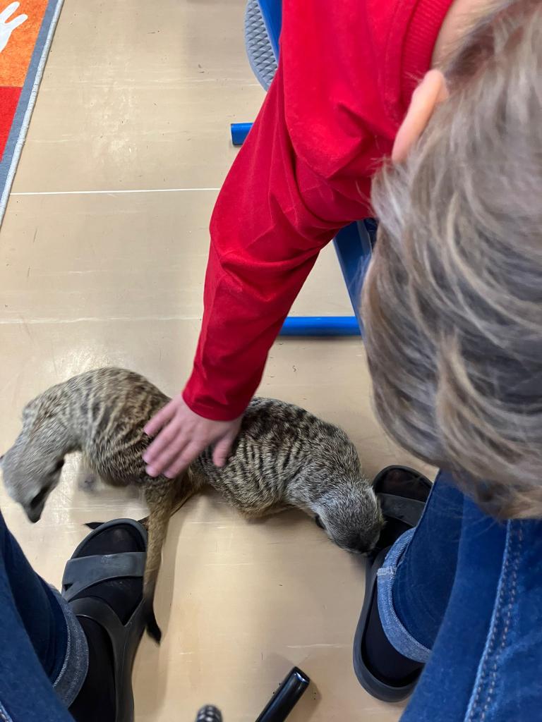 Předvánočním překvapením pro logopedické třídy byla návštěva ze ZOO Zájezd. Surikaty a mangusta ve třídě mezi dětmi - největší zážitek pro všechny.