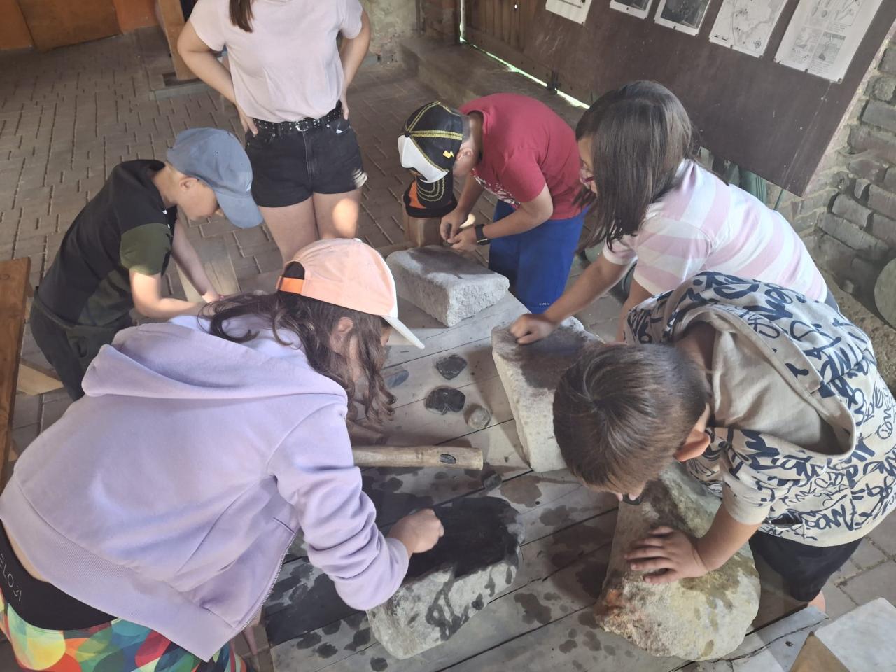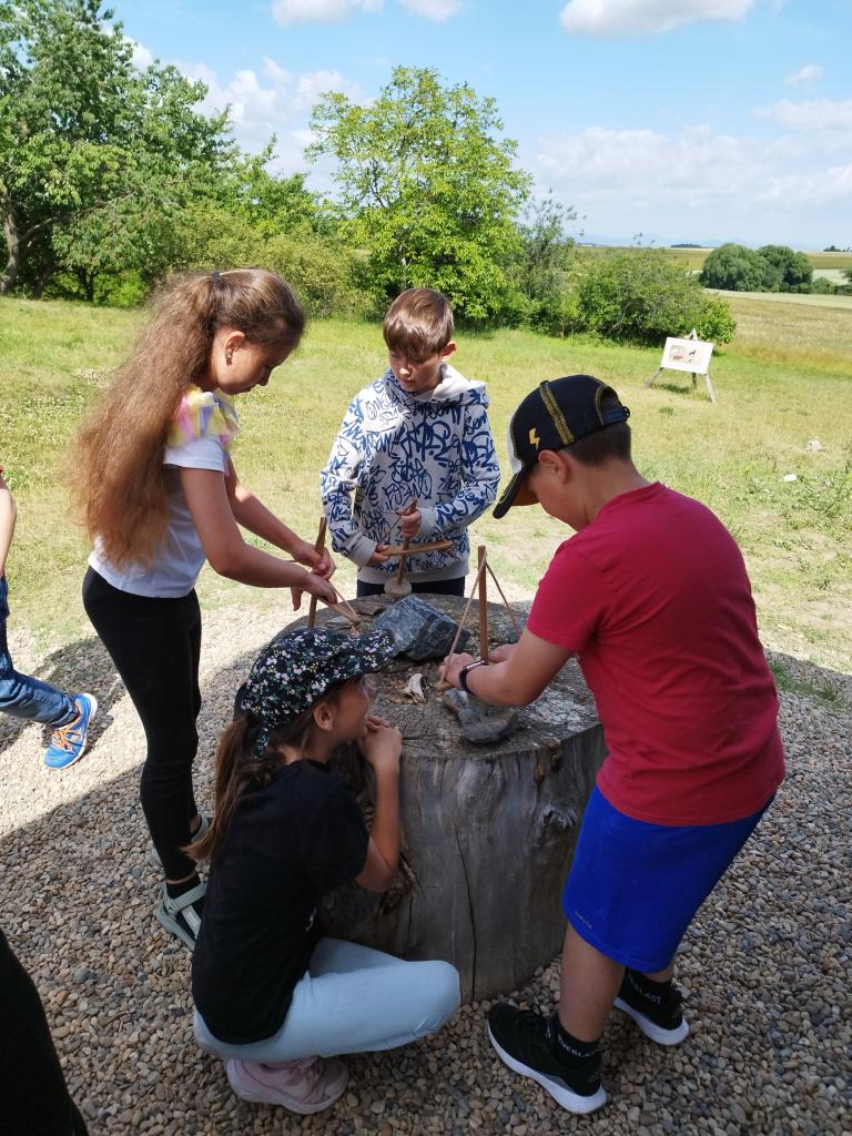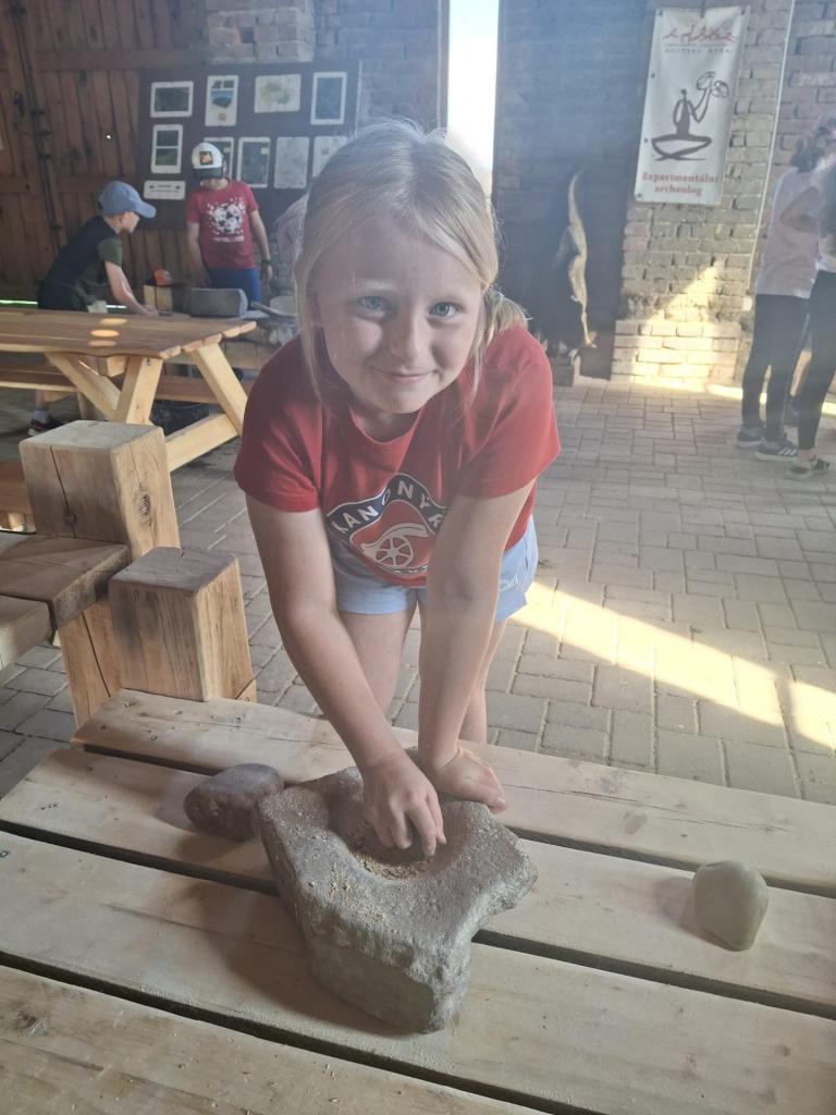 Třeťáci v rámci tmelení kolektivu jeli tentokrát do Ledčic. Absolvovali jsme program Experimentální archeolog. Mleli jsme obilí, tkali látku, brousili kámen do sekyry a hledali kovy pomocí hledačky kovů. V pravěku to neměli lehké a rádi jsme se vrátili do současnosti.