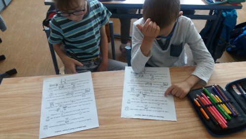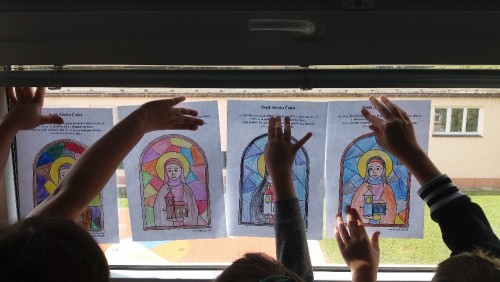 V této souvislosti jsme si vysvětlili, kde se v českém znaku vzal lev a jak znak vypadá. A pak už jsme se věnovali dějinám. Nejprve jsem využili knihu Dějiny udatného národa českého a vysvětlili si, co je časová osa. V dalších hodinách jsem se věnovali samotnému tématu český patronů. Kdo je to patron? A jaké má naše země ochránce. Četli jsem si o nich v komiksových listech, vytvářeli barevné obrazy – napodobeniny krásných oken v kostelích a chrámech. Paní učitelka četla příběhy z knihy Příběhy svatých ochránců Čech a Moravy pro děti – Kytice z královské zahrady. A nejraději jsem sledovali příběhy z cyklu Dějiny udatného národa českého: