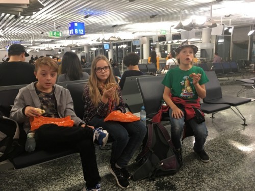 A protože čekání na letadlo ve Franfurtu bylo opravdu dlooooouuuhéééééé, pokusily jsme se děti různě zabavit. Jedním z úkolů bylo vymyslet, vyfotit a otitulkovat příběh z letiště. Tady jsou výsledky.