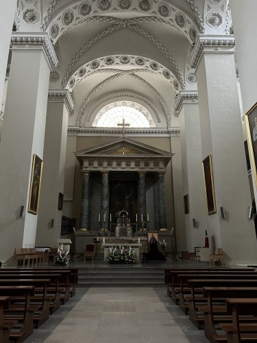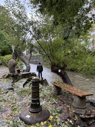 Hned první den jsme docela žasli ve škole. Mají k dispozici celý velký sál, kde mohou pořádat divadelní představení nebo i plesy. Taky by se nám hodit, protože koukat na fantastické přivítání v plískanici, která se strhla venku, by se nám moc nechtělo. Lidově se tančilo, malé děti kouzelně zpívaly (někteří z nás i zaslzeli dojetím…) a toho jídla! Měli jsme šanci projít se i po škole a podívat se do učeben. Děti si rozebrali jejich odpovědní litevští parťáci a sešli jsme se až zase v autobuse zpět do centra Kaunasu. Studentíci se rozprchli na bojovku po historickém centru a učitelé vyrazili na komentovanou prohlídku. Trošku jsme promokli a o trochu míň prochladli, ale nic tak strašného, aby to nespravila uvítací večeře v rodinách (pro děti) v tradiční restauraci (pro učitele).
