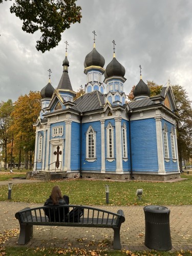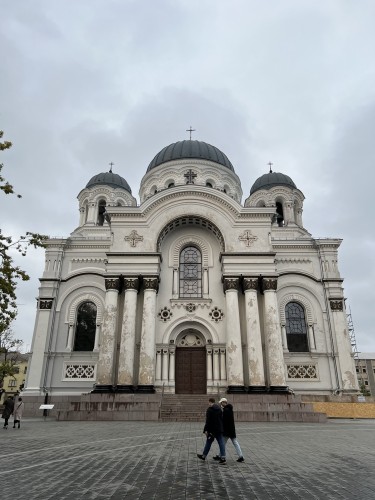To druhý den byl na počasí mnohem méně přátelské. Lilo jako z konve, ale ani to nás neodradilo a vyrazili jsme do Vilniusu na prohlídku města. Město je působí uhlazeně, je plné historie a čarovných zákoutí, ale byli jsme moc rádi, že byla prohlídka proložena obědem ve vyhřáté restauraci. Fialová polévka chutnala (skoro všem) a ten malinový čaj… Hodinku jsme strávili na vyhlídkové televizní věži nad městem. Vyhlídková restaurace se s námi pomaličku točila a nabídla nám výhled do širého okolí. Takže jsme se mohli podívat do dáli a zjistit, že v Kaunas svítí sluníčko!