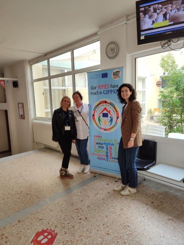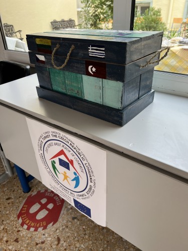 Na letišti v Soluni jsme se sešli se šesti parťačkami z Litvy, takže mezinárodní družení začalo už v autobuse cestou na trajekt. Turci přijeli bez dětí a je zázrak, že vůbec přijet mohli alespoň učitelé. Naše partnerská škola v Hatay je momentálně v ruinách po jarním zemětřesení a žáci a jejich rodiny řeší úplně jiné problémy. Držíme jim palce.