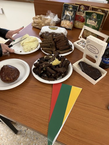 Tématem celé mobility byla “Zahrada” – tedy místní ekosystémy a místní produkty. Proto jsme táhli kufry nabalené vším možným. Jablka, chléb, brambory a řepkový olej by naše hostitele asi moc neuchvátily, a tak jsme vsadili raději na něco trochu víc pro děti. Sušenky Opavia, čokolády a bonbony Orion a samozřejmě Kolonády. Kluci profesionálně odprezentovali základní údaje o našem městě, škole a okolním životním prostředí a všem svým vystoupením vytřeli zrak. Jsme na ně nezřízeně pyšní! Zároveň si ale zaslouží pochvalu celá 9H, která na prezentaci společně pracovala několik týdnů před odjezdem. Nebyli jsme sami, kdo přivezl ochutnávku. Nacpali jsme se chlebem a klobásou z Litvy, řeckými olivami a medem a přičuchli k tureckému olivovému oleji. Na školním pozemku jsme založili i malou zahrádku. Do kufrů se nám totiž vešla i semínka českých bylinek a kytiček. Jestli přežijí řecké podnebí, tím si jistí ale tak moc nejsme.