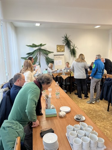 Hosty jsme protáhli po škole a seznámili je s jejím vybavením. Po školním nádvoří jsme přecházeli od pavilonu k pavilonu a nezastavila nás ani sněhová (skoro) vánice. Sníh padal i cestou na radnici, kde nás uvítal zástupce města, tajemník magistrátu pan Ing.Zděnek Slepička. Dozvěděli jsme se něco o minulosti města a trochu víc o plánech města v souvislosti s udržitelným rozvojem a úsporou energií. Den jsme zakončili uvítací večeří v Kantýně Poldi, kde se o nás vzorně postarali. I na bowling došlo.