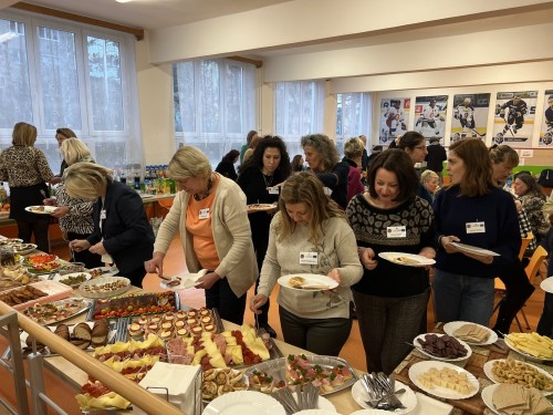 V úterý jsme naše učitele uvítali na ukázkových hodinách zpátky ve škole. Dopoledne bylo věnováno výuce na prvním stupni, odpoledne jsme se pochlubili v šestých až devátých ročnících. Jenom třída 7B měla výjimku. Online se spojovala se svými parťáky ze Španělska. Ještě, že máme šikovné děti. Hosty do jednotlivých tříd odváděli a zpátky zase vraceli hokejisti z osmého ročníku. V mezičase jsme stihli návštěvu Muzea věžáků. Večer byl ve znamení tradiční české pohostinnosti. Naši zaměstnanci uspořádali pro hosty raut ve školní jídelně. Hrálo se na kytaru i na harmoniku a moc dobře se jedlo. Domů jsme šli se širokým úsměvem, i když utahaní jako koťata…